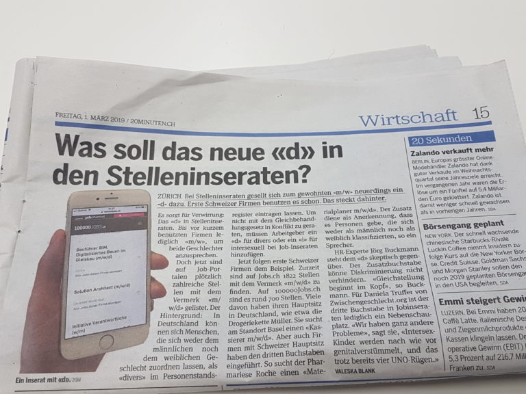 Der Artikel dreht sich um die Geschlechterangabe «m/w/d» in Stellenanzeigen und wie sinnvoll diese ist.